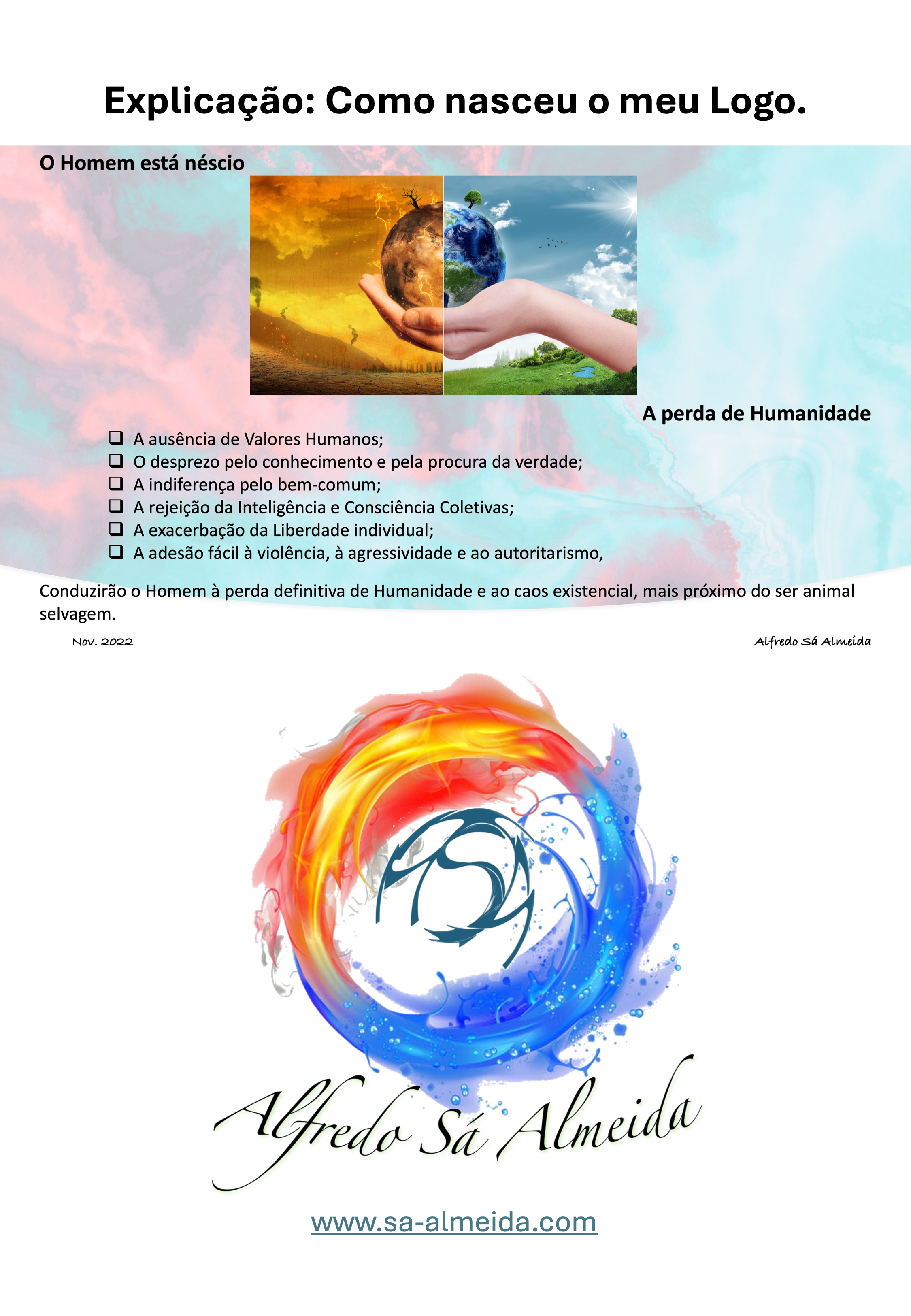 “Mudar o Futuro da Humanidade requer Seres Humanos bem determinados, conscientes, imbuídos de Valores Humanos, muitos conhecimentos e resiliência q.b. para enfrentar todas as adversidades de uma Sociedade doente, mas com capacidade de ser recuperada para um novo desígnio Global.